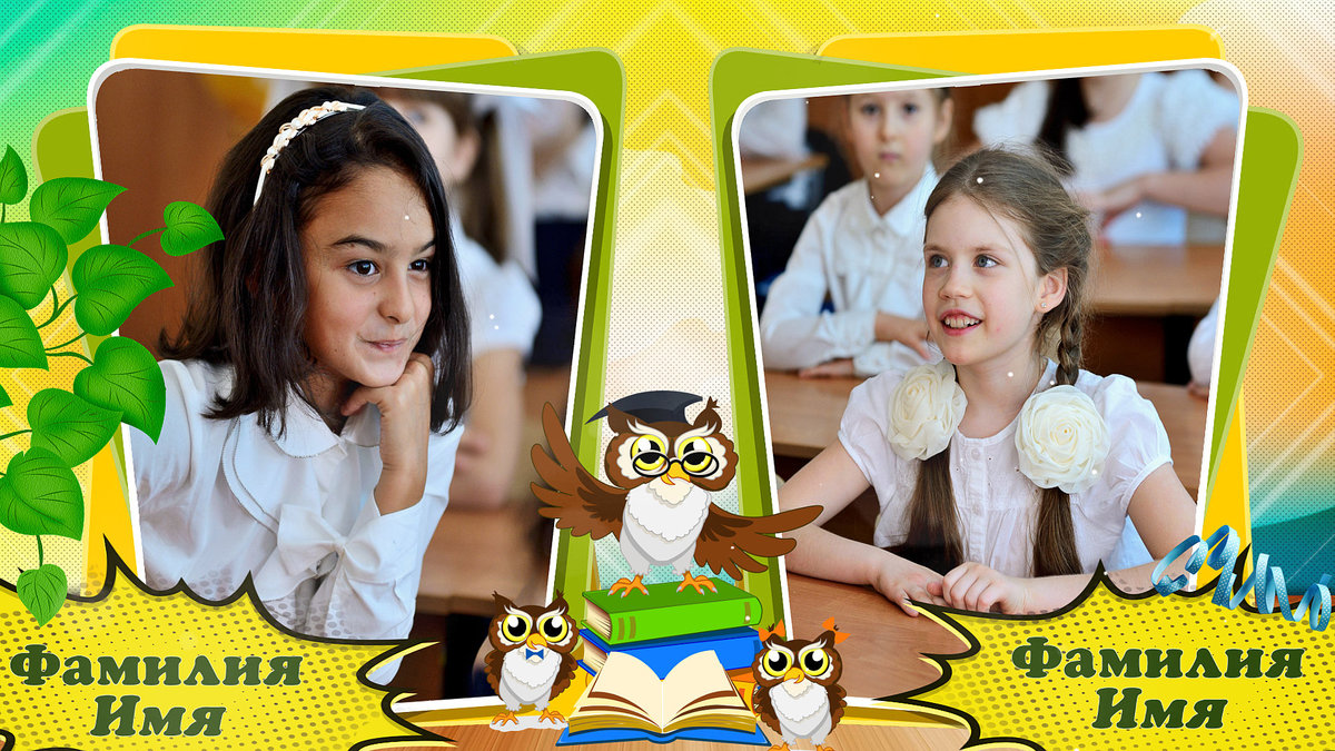 Рассчитан на 25 фото учеников, 1 фото школы, 1 фото учителя, 4 групповых фото.
